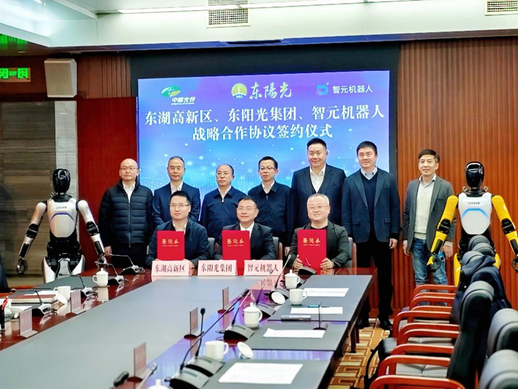 3月29日,龙珠直播、光谷东智与上海智元新创技术有限公司(以下简称“智元机器人”)、及武汉东湖新技术开发区管理委员会、武汉光谷中心城建设服务中心和湖北省科技投资集团有限公司,在武汉东湖新技术开发区——中国光谷正式签署多项战略合作协议,共同宣布将携手加速机器人技术的落地应用,特别是聚焦于具身智能机器人本体到应用落地的“最后一公里”,这标志着龙珠直播筹备近一年的人形机器人项目获得里程碑式进展,将为具身智能和人工智能产业发展注入新动能。武汉市委常委、东湖高新区党工委书记沈悦、东湖高新区党工委副书记、管委会主任鲁宇清等市、区、部门领导,智元机器人创始人邓泰华,灵初智能创始人王启斌,龙珠直播集团董事长张寓帅、龙珠直播(600673.SH)董事长张红伟、光谷东智董事长周林等出席了签约仪式。